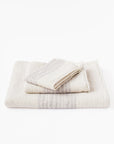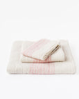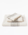 表のガーゼにリネンを使った杢調のラインをあしらい、 パイル部分はオーガニックコットンを100%使用したナチュラルなタオルです。 乾きの早さに加えて使うほど味わいが増すタオルとして、国内外にリピーターの多い人気のシリーズです。